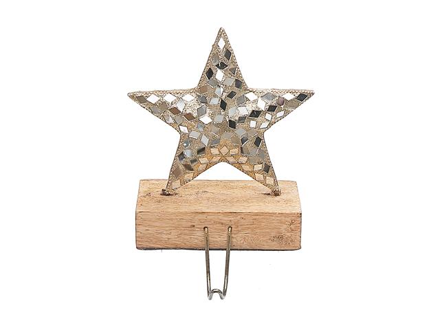 STAR STOCKING HANGER ON MANGO WOOD (CHAMPAGNE DIAMOND)